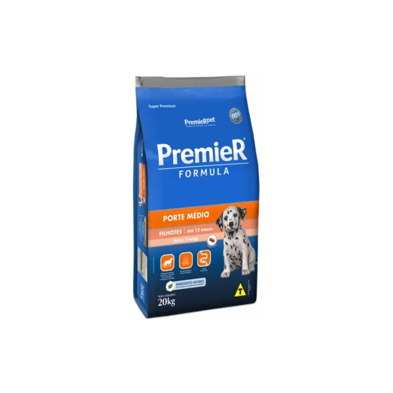 RAÇÃO PREMIER FÓRMULA RAÇAS MÉDIAS FILHOTES FRANGO Tamanho:20KG